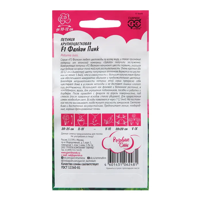Семена Петуния "Фалкон Пинк", ц/п, F1, 5 шт. — Характеристики