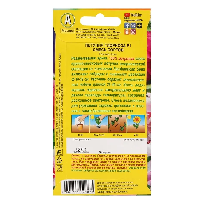 Семена Петуния Глориоза F1 крупноцветковая махровая,набор 5 шт — Характеристики