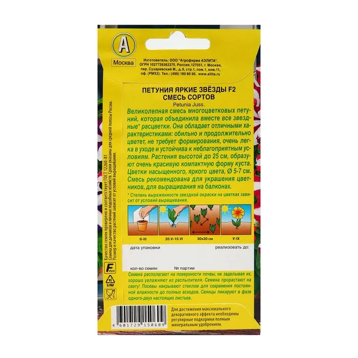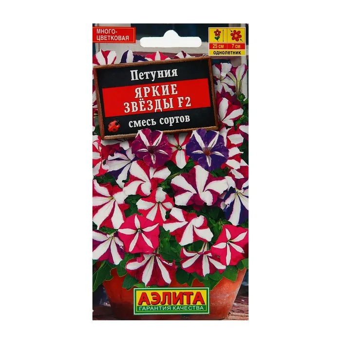 Семена Петуния "Яркие звезды", F2, многоцветковая, смесь сортов, 0,02 г — Характеристики