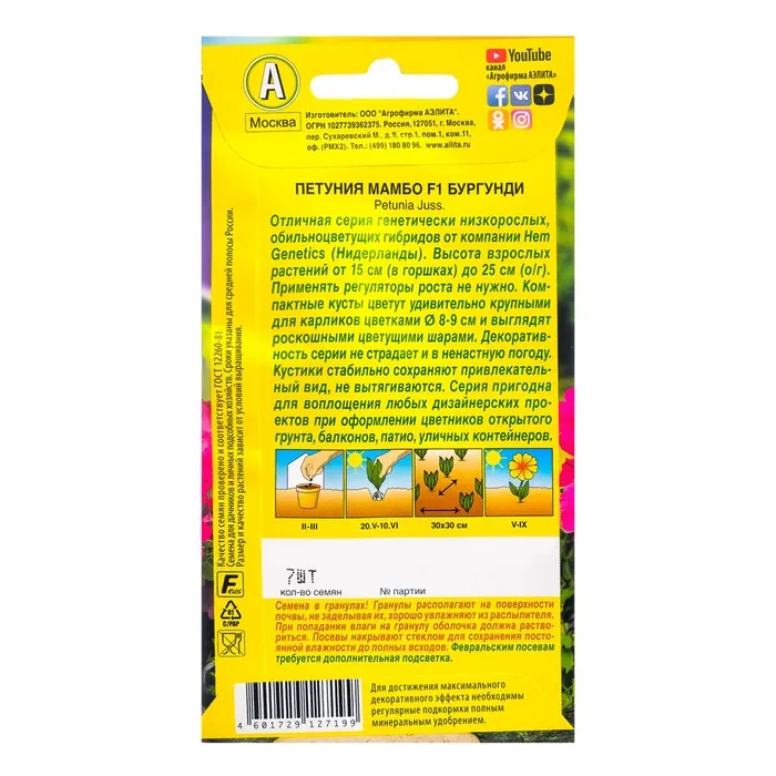 Семена Петуния Мамбо F1 бургунди многоцветковая, 7 шт — Характеристики