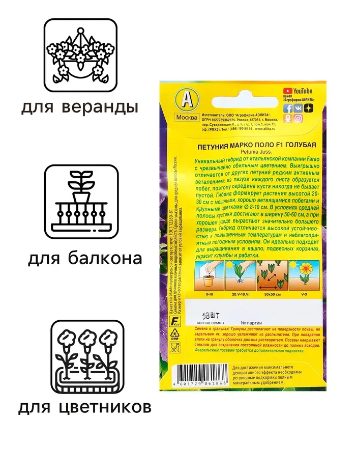Совершенно новый тип крупноцветковой петунии с уникальными характеристиками. Марко Поло - первая в мире петуния, которая дает ошеломляющее количество цветков за счет мужской стерильности (не дает семян), что создает конкуренцию петуниям и сурфиниям, которые размножаются черенками. Растения с невероятно мощными ветвящимися побегами (покрывают почву до 1 метра в диаметре, при высоте 20 см), усыпаны огромным количеством цветков! При выращивании в горшках побеги каскадами спадают через края. Петуния Марко Поло способна адаптироваться к широкому диапазону температур - от -8 до 40°С. При понижении температуры растения не погибают, а только замедляют рост и цветение. Поддерживая оптимальные условия выращивания (11 часовой световой день и температуру 20-22°С), можно сохранить растения цветущими круглый год, что дает новые возможности в декоративном озеленении. Петуния Марко Поло идеально подходит для производства рассады в теплицах: растения однородные, очень крепкие, а главное, цветение начинается на ранней стадии.