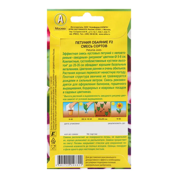 Семена Петуния Обаяние F2 многоцветковая, смесь окрасок Одн Ц/П 0,02г — Характеристики
