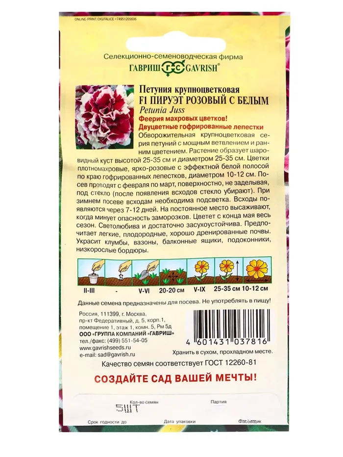 Семена Петуния "Пируэт", ц/п, розовый с белым, F1, 5 шт — Характеристики