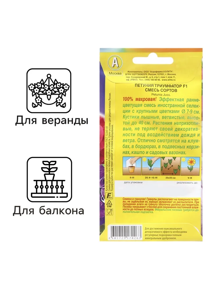 Семена Петуния "Триумфатор", F1, 5 шт — Характеристики