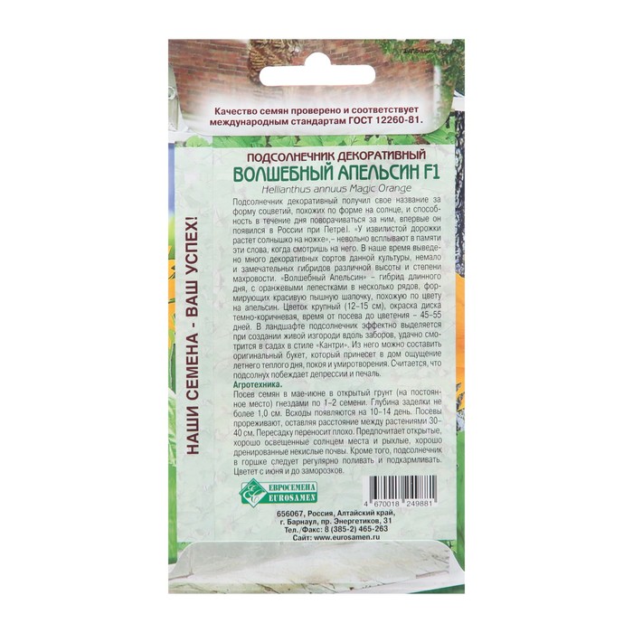 Семена Подсолнечник декоративный "Волшебный Апельсин", 5 шт — Характеристики