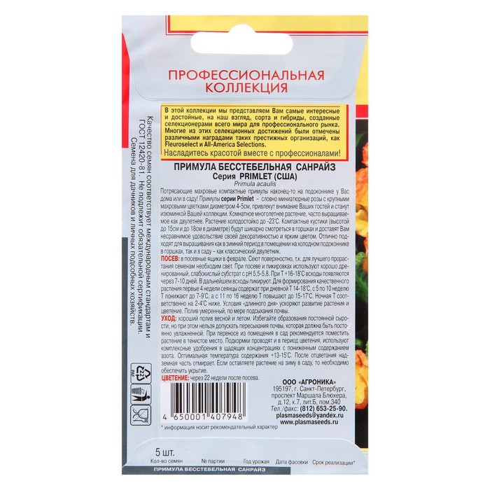 Примула бесстебельная «Санрайз» — это компактное комнатное растение высотой до 15 см с крупными махровыми коробочками диаметром 4–5 см. Отличается морозостойкостью.