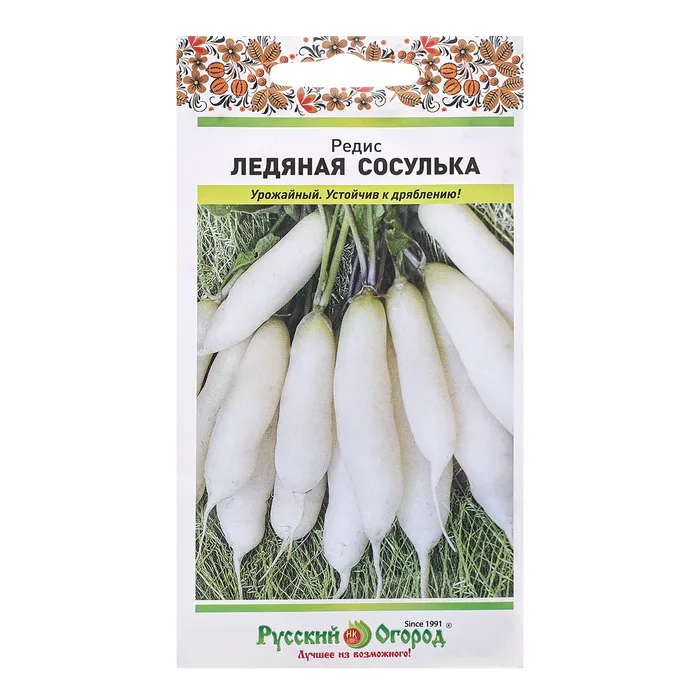 Среднеранний сорт — эксклюзив с оригинальной окраской и великолепным вкусом. Корнеплод округлый, фиолетовый, гладкий, массой 15-20 г. Мякоть плотная, белая, нежная и сочная, полуострого вкуса. Сорт устойчив к стрелкованию, поэтому можно выращивать его в течение всего лета.