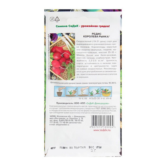 Семена Редис "Королева Рынка" 2г — Характеристики