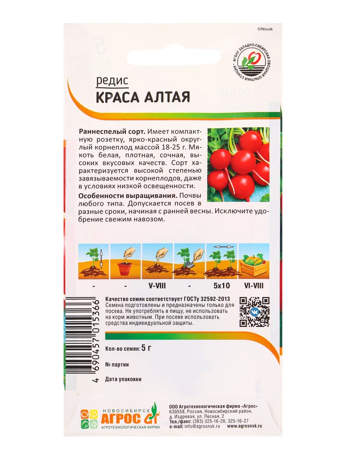 Семена Редис "Краса Алтая" 5 г — Характеристики