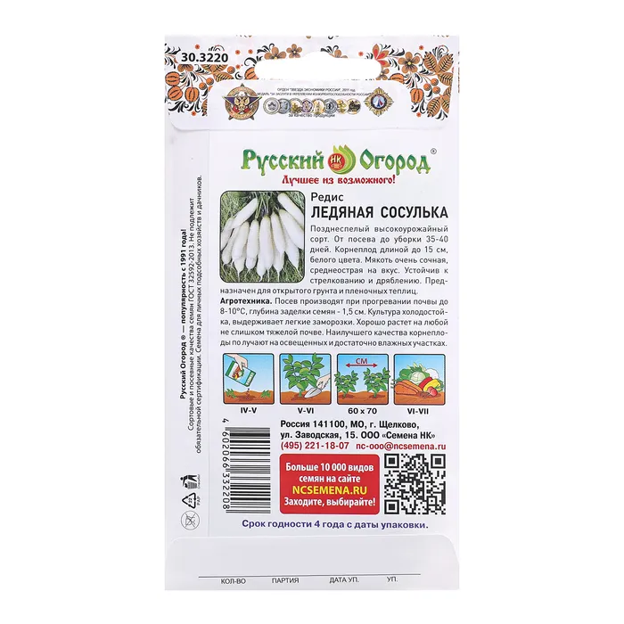 Семена Редис "Ледяная сосулька", ц/п, 3 г — Характеристики