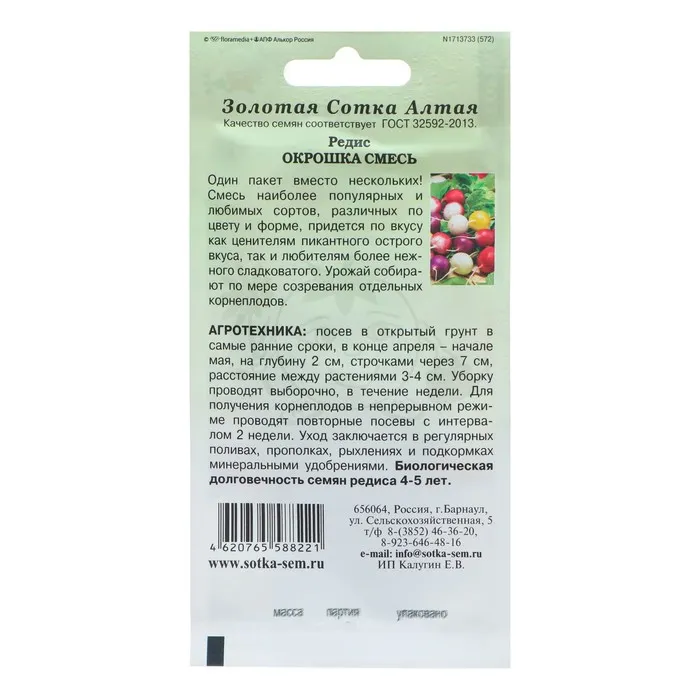 Семена Редис «Окрошка смесь», 3 г — Характеристики