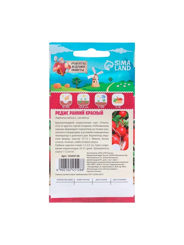 Семена Редис "Ранний красный", 2 г — Характеристики