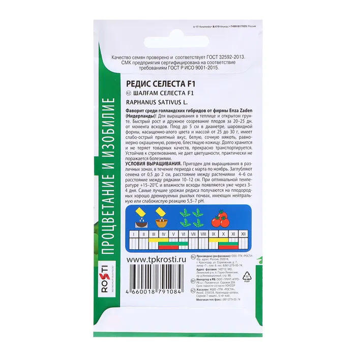 Семена Редис Селеста F1, семена Агроуспех 0,5г — Характеристики