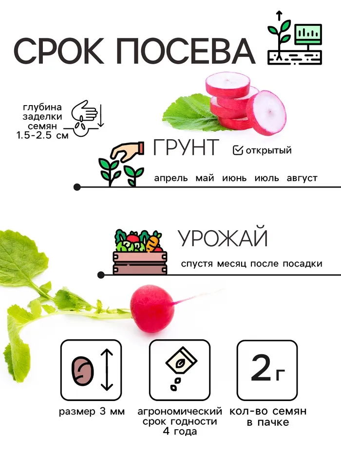 Семена Редис Семен Скороход 2г — Характеристики