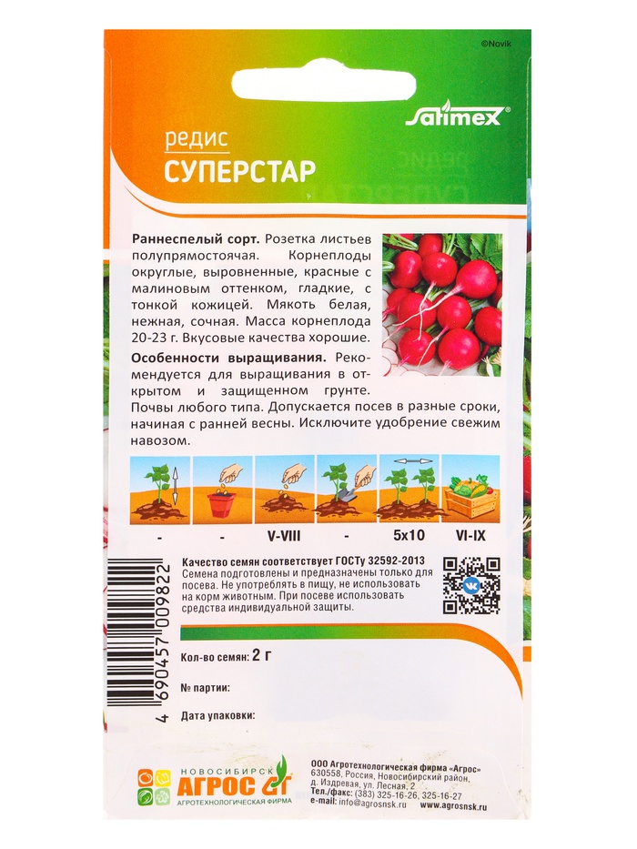 Семена Редис "Суперстар" 2 г — Характеристики