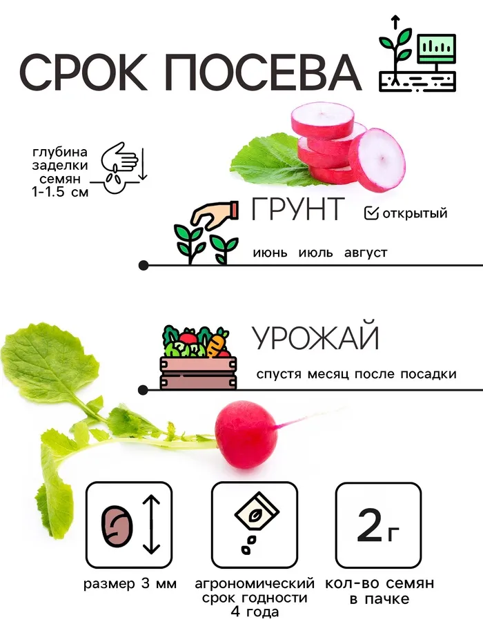Семена редиса "Жара" — это высокоурожайный сорт, который отлично подходит для выращивания в условиях теплого климата. Вот подробное описание:
