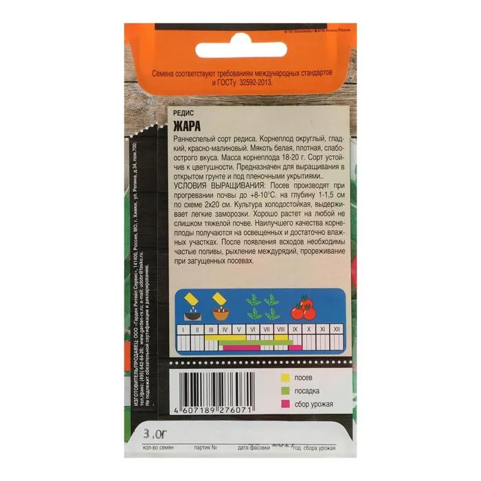 Для выращивания редиса выбирают незатененные, солнечные участки, с которых весной раньше сходит снег. Семена высевают в рядки на глубину 1-1,5 см. Промежуток между ними должен быть до 12 см. Между семенами оставляют 2-3 см. Чтобы получить более ранний или поздний урожай, возможно высевать редис в защищенный грунт в самом начале марта – весной и в начале сентября.