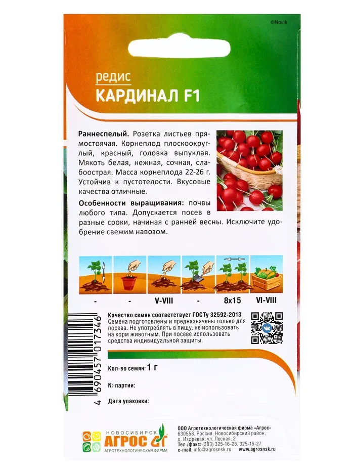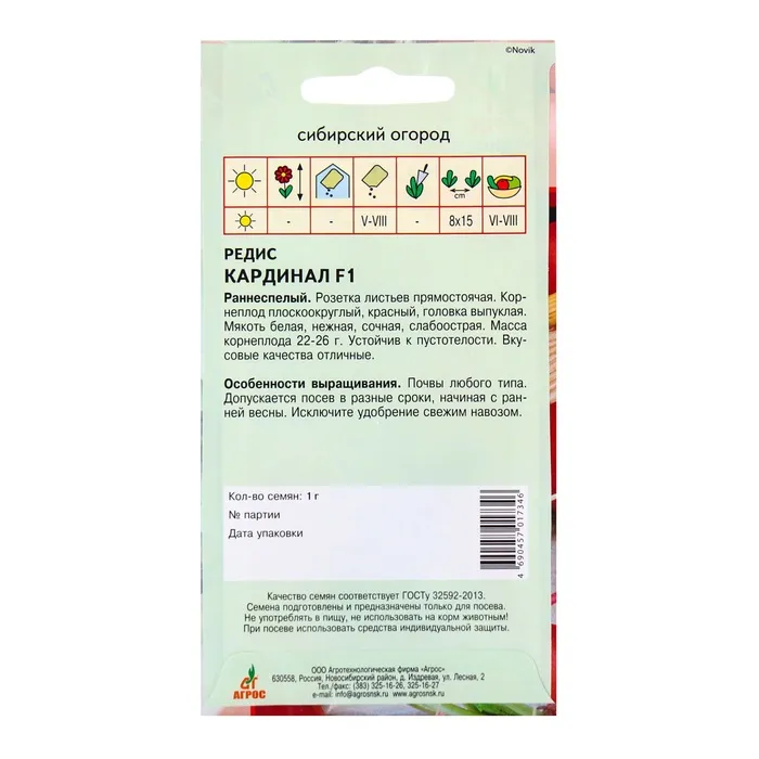 Семена для выращивания редиса «Кардинал» — это качественный выбор для вашего огорода, который сочетает в себе устойчивость и высокую урожайность. Подходят для тех, кто ищет простой и эффективный способ получить свежий редис на своём столе.