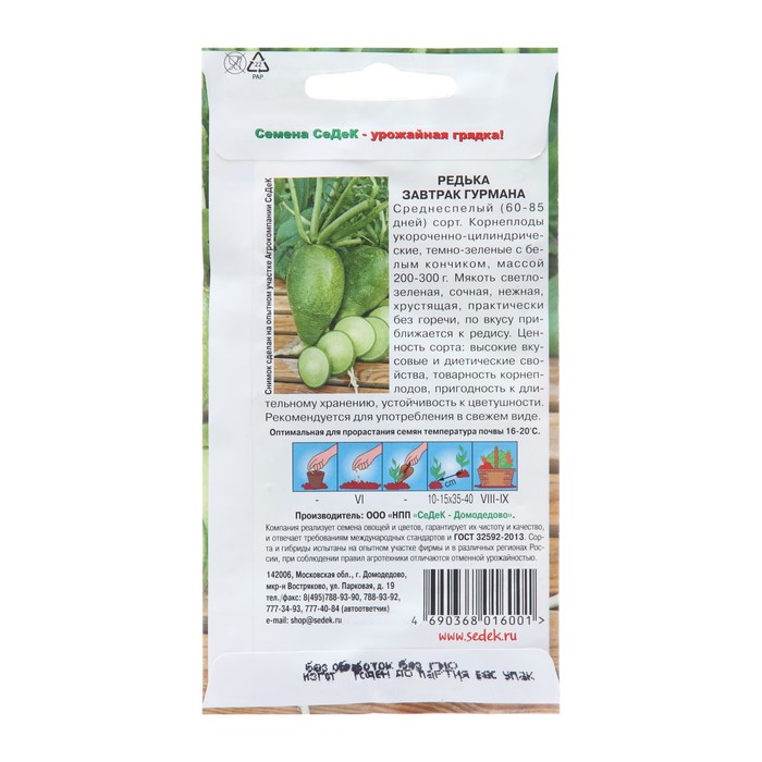 Семена Редька "Завтрак гурмана", 1 г — Характеристики