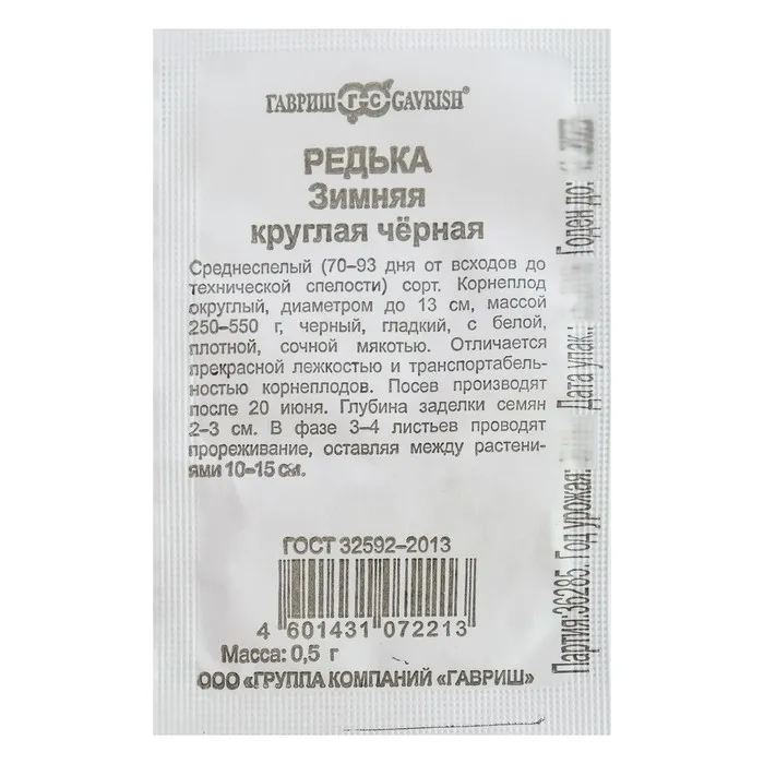 Семена Редька Зимняя круглая, чёрная, б/п, 0,5 г — Характеристики