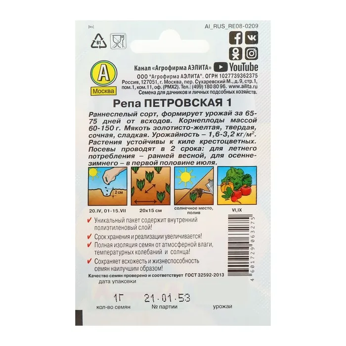 Сладкая сочная мякоть подходит для употребления в свежем виде, либо для приготовления диетических легкоусвояемых блюд. Репа «Петровская» отлично подходит для хранения — она будет ценным источником витаминов осенью и зимой.