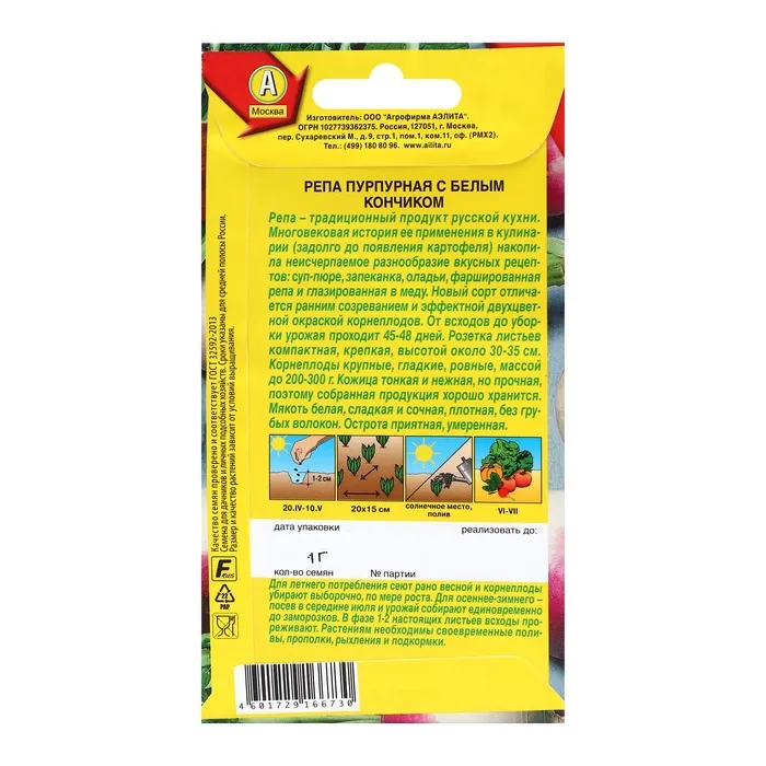Семена репы с пурпурным и белым окрасом вырастят красивые корнеплоды, которые украсят ваши блюда. Насыщенный цвет и легкий привкус добавят разнообразия в ваше меню. Используйте свежую репу в салатах или приготовьте её на пару для получения максимальной пользы.