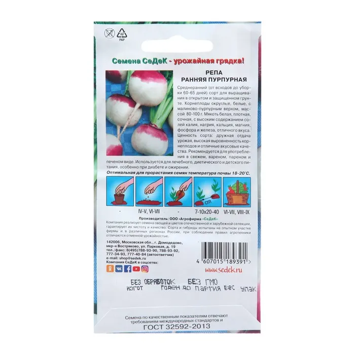Семена Репа "Ранняя Пурпурная", 1 г — Характеристики