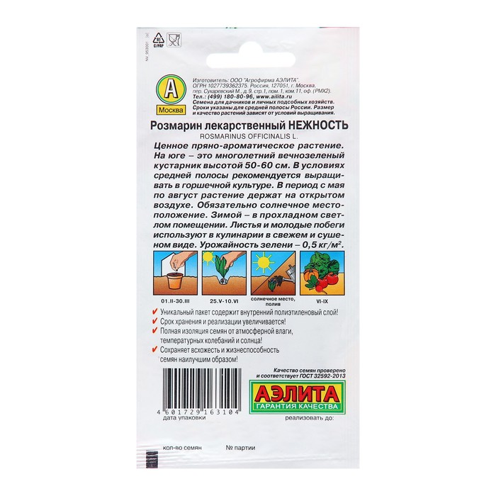 Семена Розмарин Нежность Ц/П 20шт — Характеристики