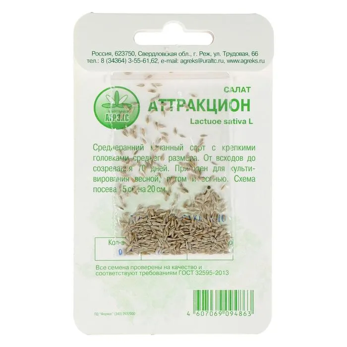 Агротехника. Культура холодостойка, свето- и влаголюбива. Посев в открытый грунт или на рассаду, глубина заделки семян –1–2 см. размещают на плодородных, рыхлых, нейтральных, хорошо обработанных, удобренных с осени почвах. Оптимальная температура проращивания 15…22°С. Чтобы ускорить получение урожая в открытом грунте, посевы укрывают пленкой. Всходы появляются через 7 – 14 дней. Прореживание кочанного салата проводят дважды: сначала в фазе одного настоящего листа, на расстоянии 5-7 см., затем в фазе 4-5 листьев. Растения, удаленные в первых раз, можно использовать как уплотнитель.