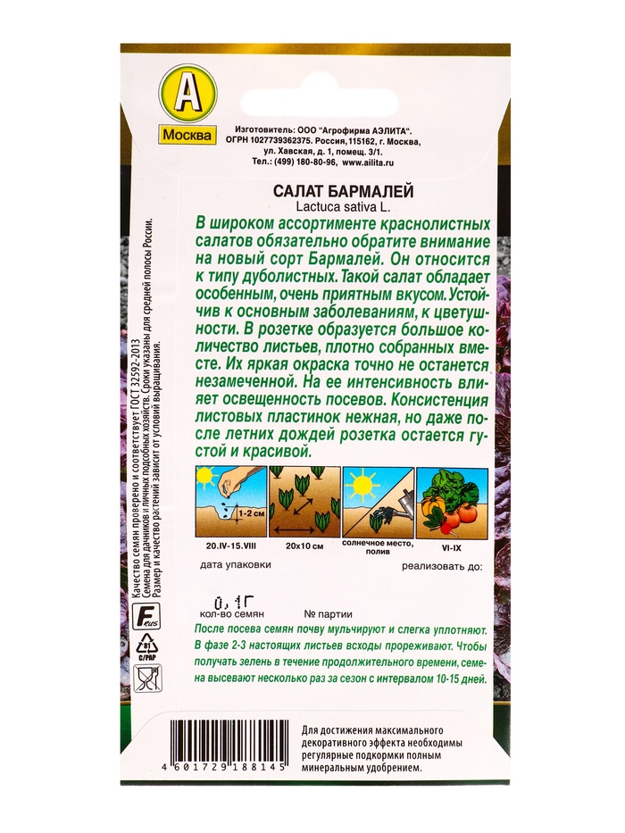 Семена Салат «Бармалей», 0.1 г, «Агрофирма АЭЛИТА» — Характеристики