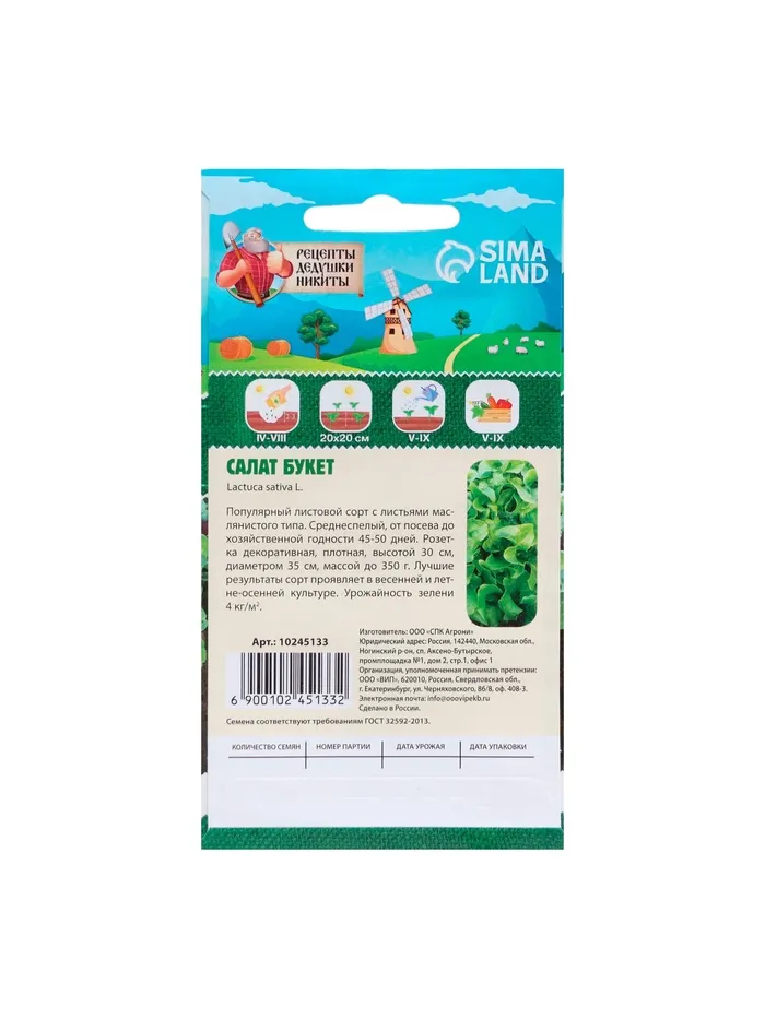 Семена Салат "Букет", 0,5 г — Характеристики