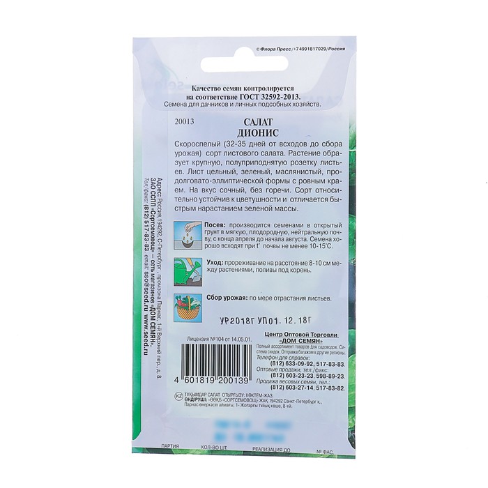 Семена Салат "Дионис" Дом семян, 440шт — Характеристики