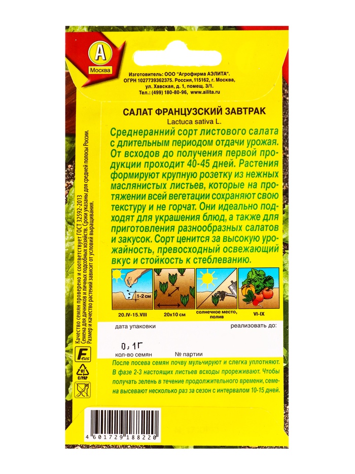 Семена Салат «Французский завтрак», 0.1 г, «Агрофирма АЭЛИТА» — Характеристики