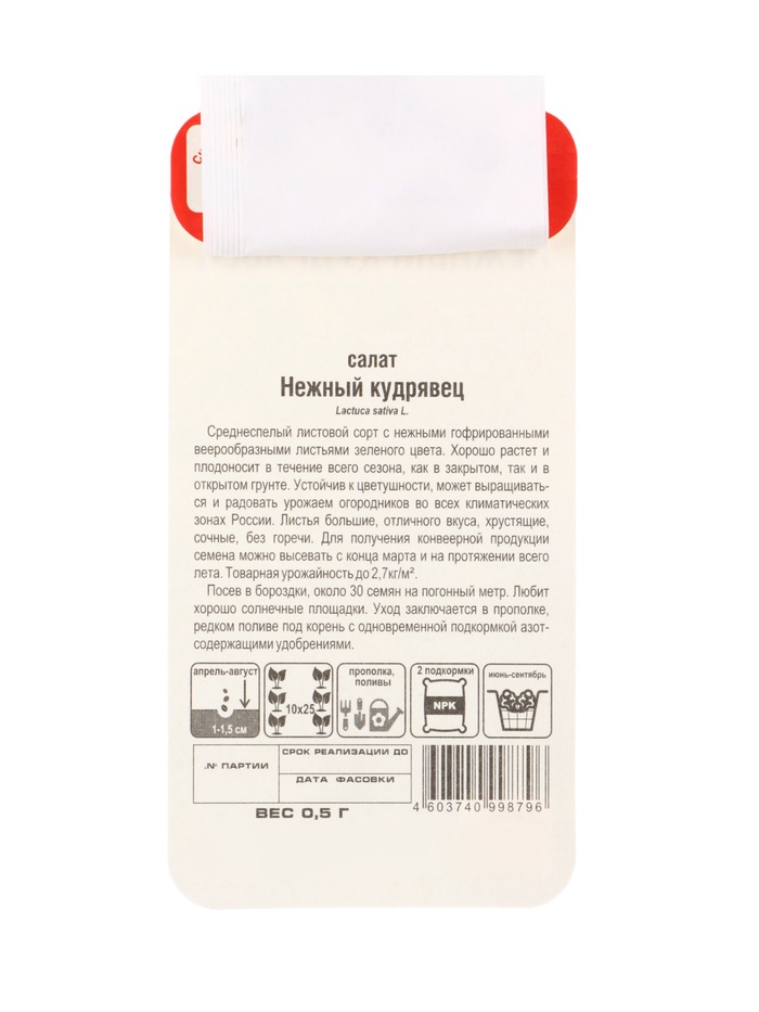 Холодостойкий, свежий на вкус, урожай на все лето. Хорошо растет и плодоносит в течение всего сезона, как в закрытом, так и в открытом грунте. Устойчив к цветушности, может выращиваться и радовать урожаем огородников во всех климатических зонах России. Листья большие, отличного вкуса, хрустящие, сочные, без горечи. Для получения конвеерной продукции семена можно высевать с конца марта и на протяжении всего лета. Товарная урожайность до 2,7кг/м2.