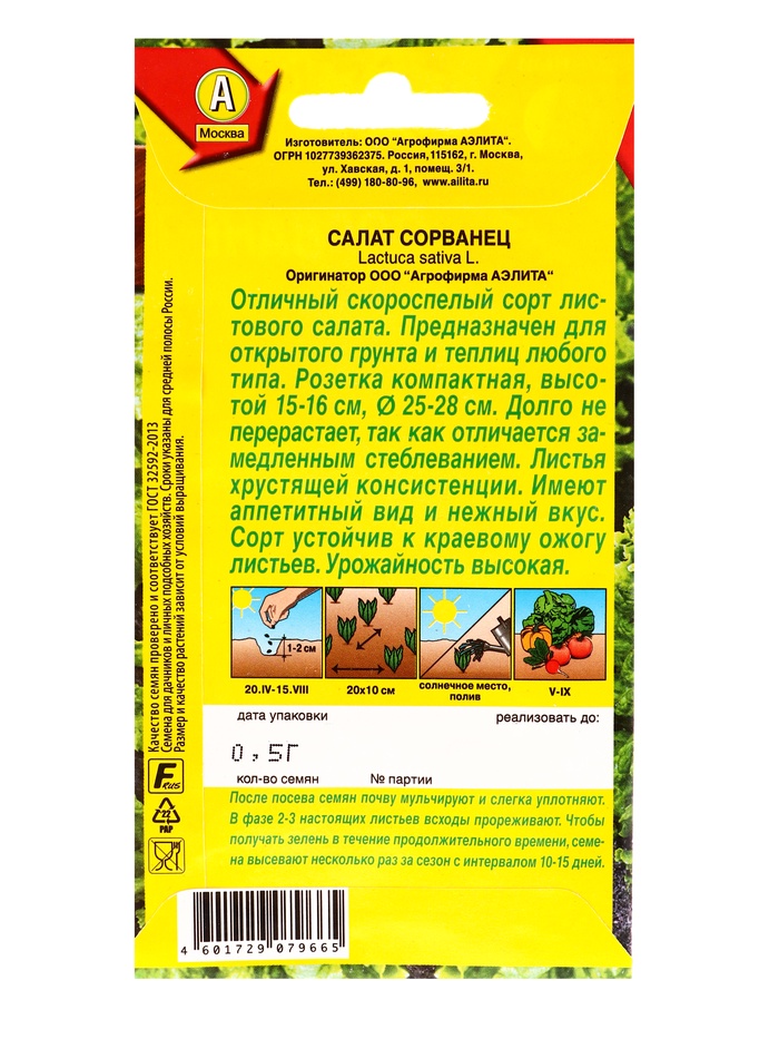 Семена Салат «Сорванец», листовой, 0.5 г, «Агрофирма АЭЛИТА» — Характеристики