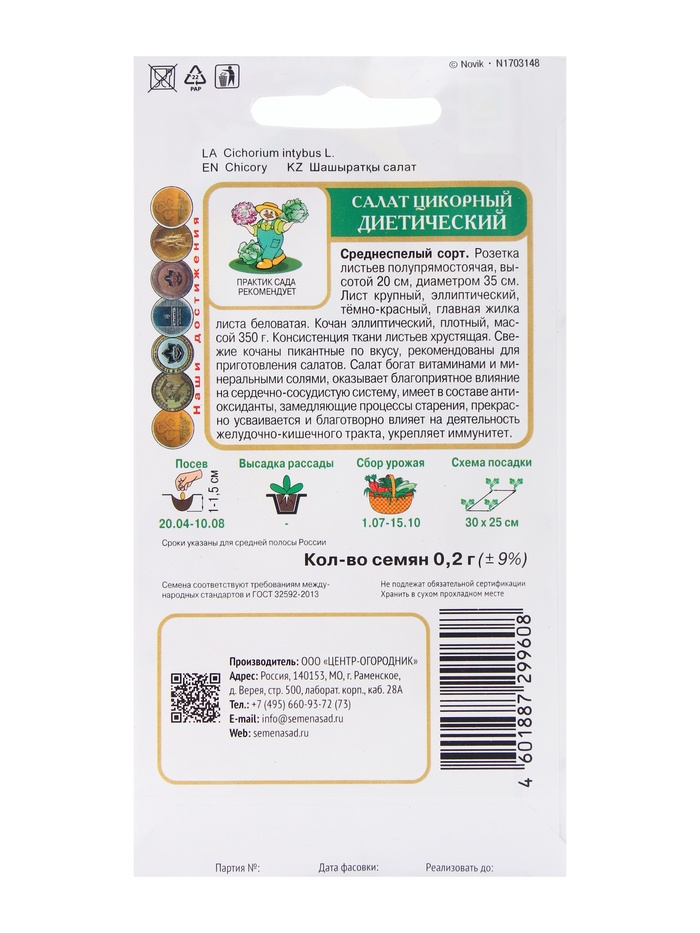 Семена Салат цикорный Диетический, 0,2гр — Характеристики