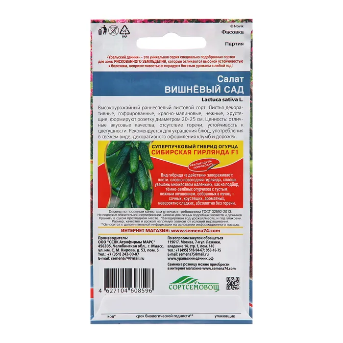 Семена Салат "Вишневый сад", 0,25 г — Характеристики