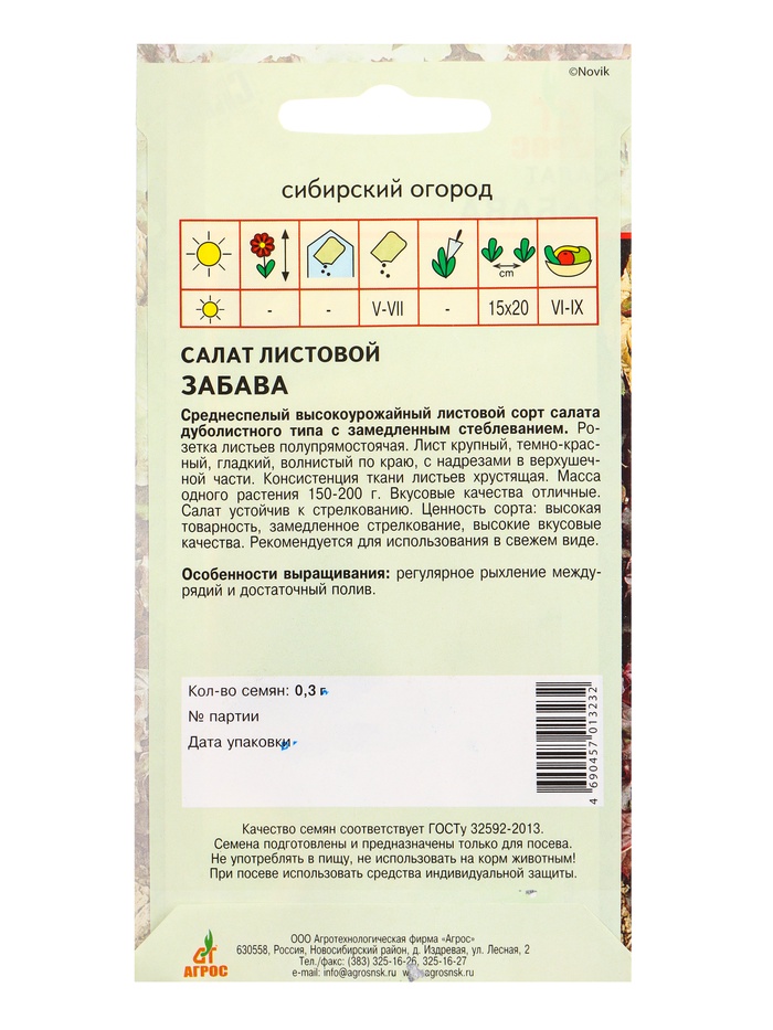 Семена Салат "Кладезь Здоровья", ц/п, 0,5 гр.