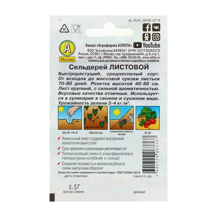 Семена Сельдерей «Листовой», 0.5 г, «Лидер-Агрофирма АЭЛИТА» — Характеристики