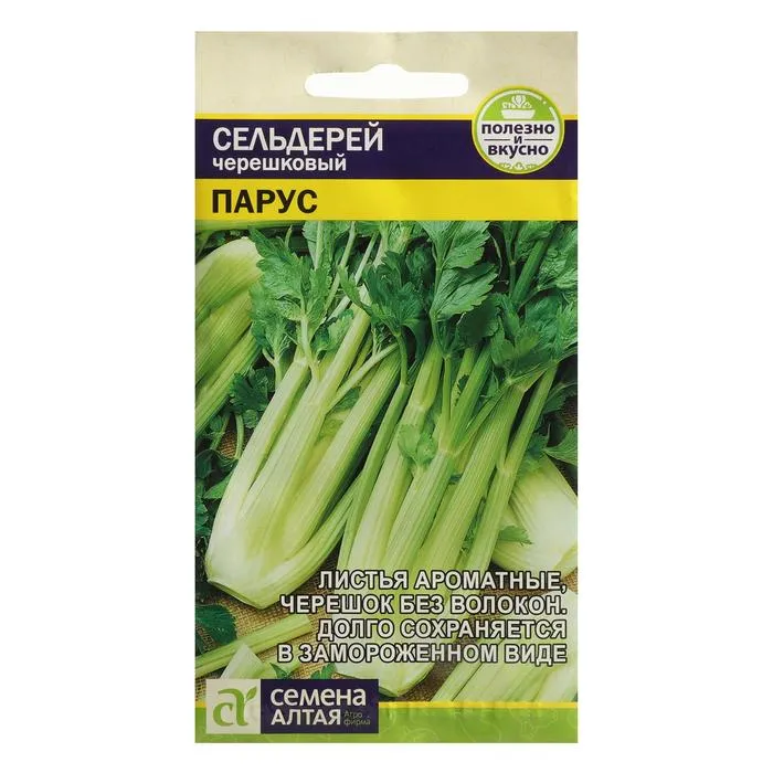 Семена листового сельдерея «Самурай» — высокоурожайный холодостойкий среднеспелый сорт, период от всходов до начала хозяйственной годности длится 72‒82 дня. Урожайность зелени — 3,8‒4,0 кг/м². Розетка листьев вертикальная, высотой до 65 см, масса одного растения достигает 650 г. Листья среднего размера, глянцевые, нежные и сочные, имеют приятный сильный аромат. Используются в свежем и сушёном виде как приправа к салатам, супам и при консервировании. Подходит для заморозки. Сельдерей — одно из самых ценных пряных овощных растений, который содержит большое количество витаминов, минералов, аминокислот и эфирных масел.