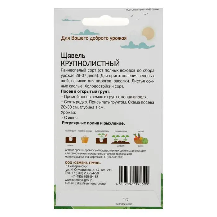 Семена Щавель Крупнолистный 1 гр — Характеристики