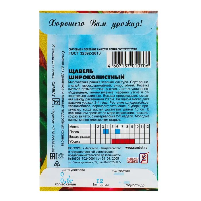 Высевать семена щавеля рекомендуется ранней весной, хотя также допускается и летний посев. Для хорошего развития зелени следует соблюдать необходимое расстояние между рядами, это 50 см. Не нужно высевать семена слишком глубоко, для этой культуры оптимальная глубина заделки составляет 1,5 см. Для посева необходимо выбирать плодородную почву, слабокислую. Высевают щавель рядами на небольшую глубину. Расстояние между рядами должно составлять не менее 25 см. Посев начинают ранней весной либо летом. Щавелю, как и другим листовым культурам, необходим регулярный полив, рыхление междурядий и подкормка минеральными удобрениями. Кроме этого, рекомендуется вырезка семенных стеблей. При необходимости, при поражении листа вредителями, производят опрыскивание химическими или органическими веществами. Первый урожай щавеля срезают, когда высота листьев достигнет 10 см. Затем сбор можно повторять по мере отрастания листа. Примерно каждые 10-14 дней. В жаркое время лист становится жестким и содержит много щавелевой кислоты. Это не только портит вкусовые качества растения, но и отрицательно влияет на желудочно-кишечный тракт, вызывая его раздражение. Щавель можно консервировать или замораживать на зиму. Перед заморозкой его необходимо обдать кипятком. Можно бланшировать в течение 1 минуты. Срезку листьев прекращают за 20-25 дней до конца вегетации.