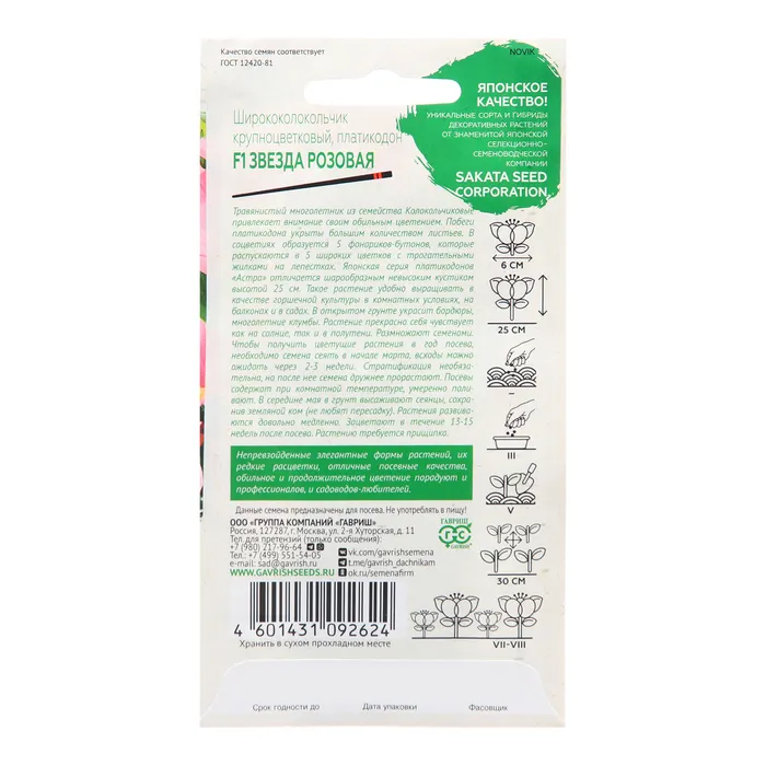 Семена Ширококолокольчик "Звезда розовая" , ц/п, F1 4 шт. — Характеристики