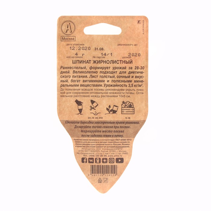 Раннеспелый (28-31 день от полных всходов до уборки урожая) сорт. Розетка листьев среднекомпактная, полуприподнятая. Листья зеленые, сочные, нежные, слабопузырчатые.