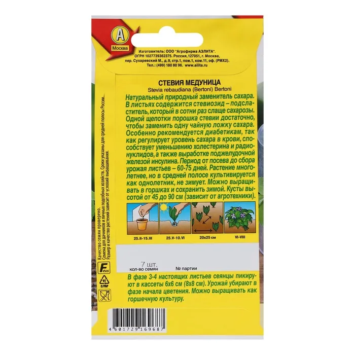 Семена Стевия "Медуница", ц/п, 7 шт — Характеристики
