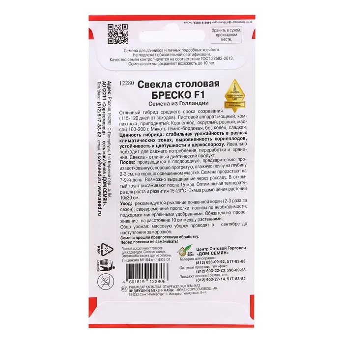 Семена Свекла "Бреско F1", 100 шт — Характеристики