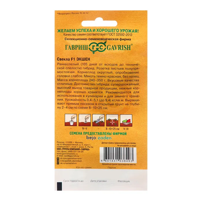 Семена Свекла "Экшен", ц/п, F1, 1 г — Характеристики