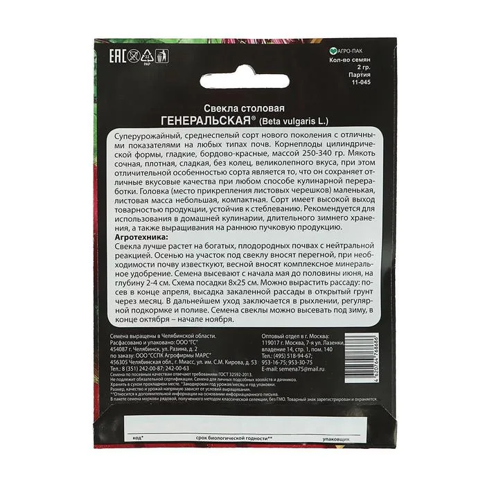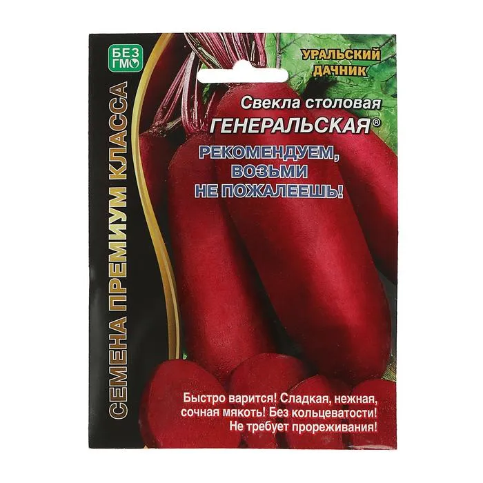 Свёкла «Генеральская» — это высокоурожайный среднеспелый сорт нового поколения. Гладкие бордово-красные корнеплоды цилиндрической формы массой 250–340 г обладают отменным вкусом при любом способе кулинарной обработки.