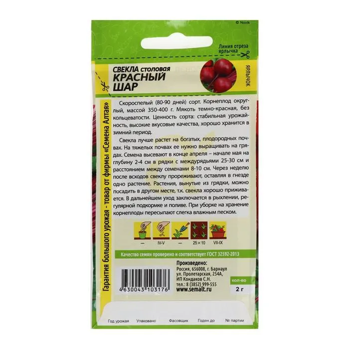 Скороспелый (80-90 дней) сорт. Корнеплод округлый, мякоть темно-красная, без кольцеватости. Масса корнеплода 350-400 г. Ценность сорта: стабильная урожайность, высокие вкусовые качества, хорошо хранится в зимний период. Свекла лучше растет на богатых, плодородных почвах. На тяжелых почвах ее нужно выращивать на грядах.