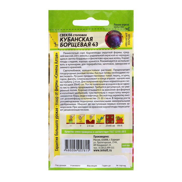 Семена Свекла "Кубанская Борщевая 43", ц/п, 2 гр. — Характеристики